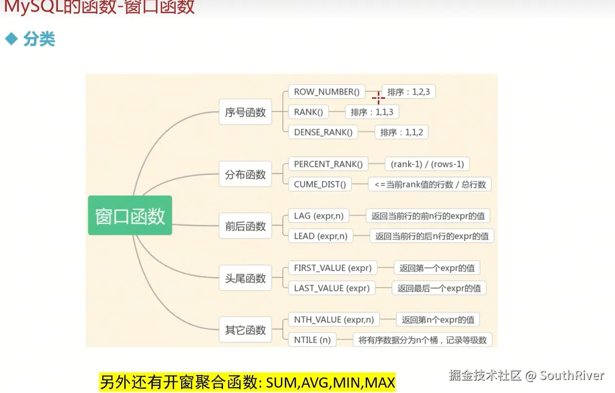 MySql学习笔记_第二篇 SouthRiver 2024-09-25 44 阅读1分钟 5. 函数 5.1 数学函数 5.2 字符串函数 5.3 日期函数 5.4 控制流函数 5.5 窗口函数 6. 视图 概念:临时中间表
