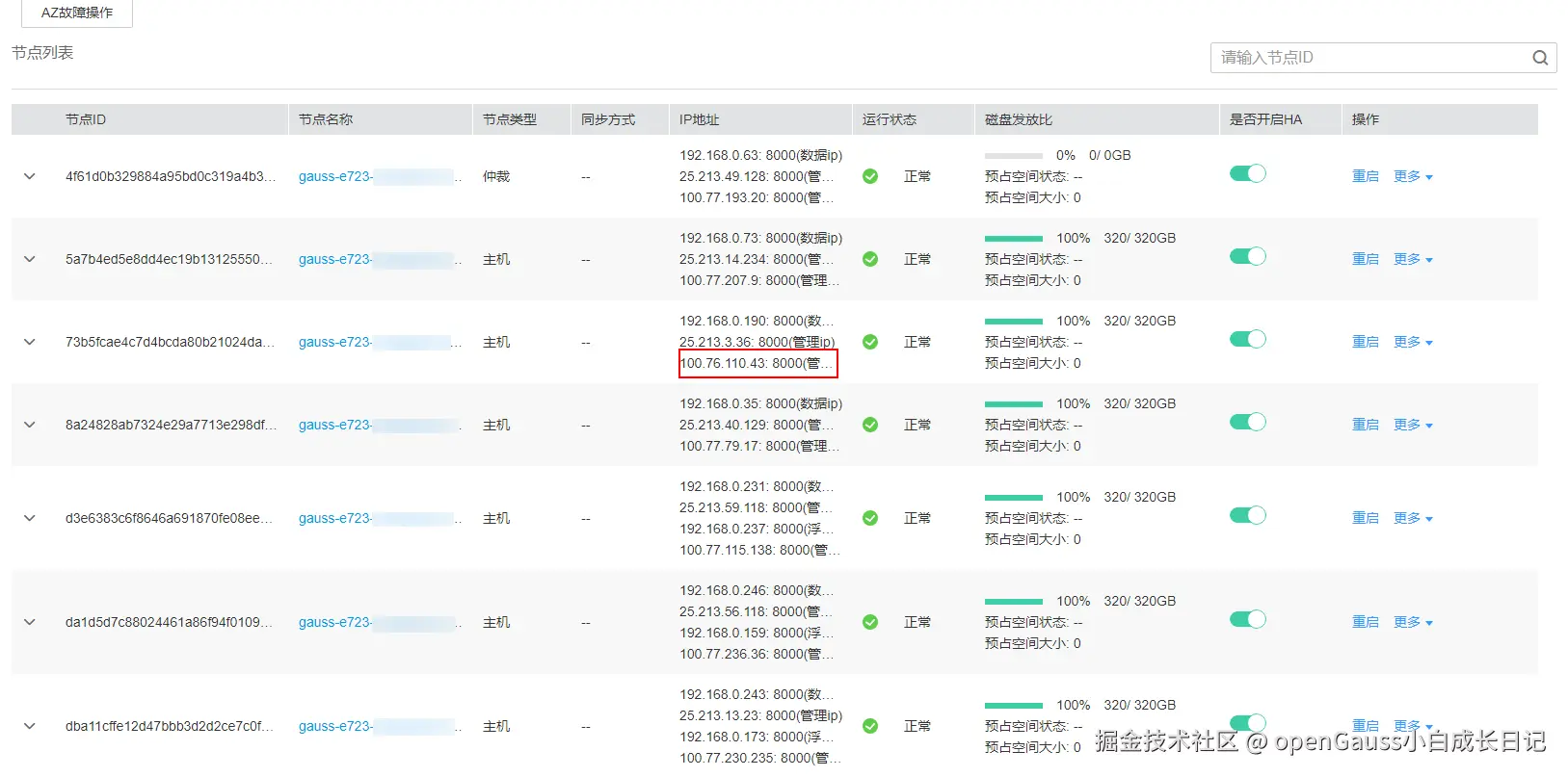 参考查看管理节点IP信息查询GaussDB实例管理节点IP。