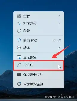 步骤1:右键鼠标单击电脑桌面上的空白区域。在弹出的右键菜单中,选择 【个性化】 选项。