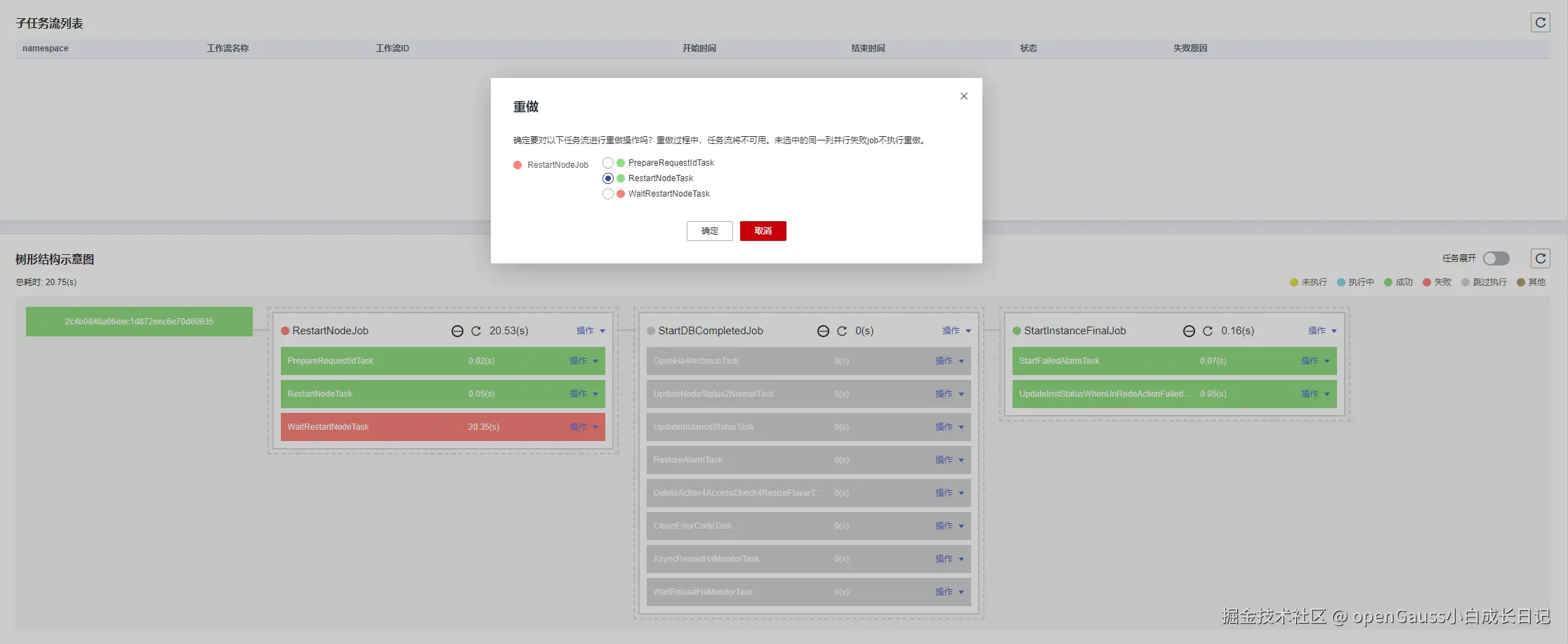 如果可ping通,说明GaussDB Service到实例网络可以联通。在树表里面RestartNodeJob任务,单击“操作”下拉箭头中的“重做”进行任务重试。如果启动操作仍然失败,请执行6。
