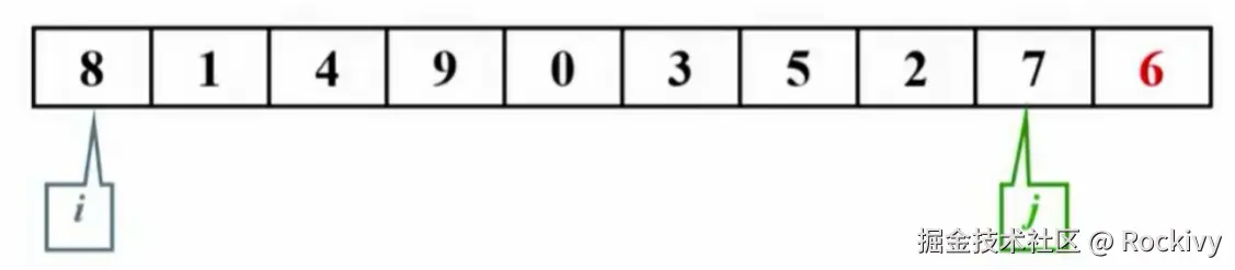 - 对比主元与i、j的值并进行交换,直至完成分区。