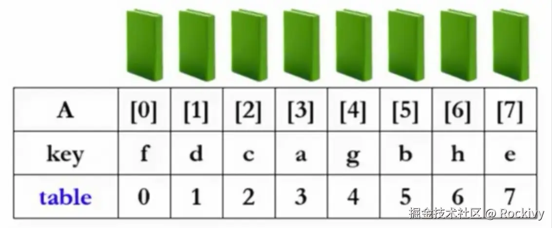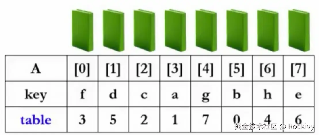 表排序适用于待排元素为复杂结构(如书籍)。其特点是不移动原始数据,仅移动指向它们位置的指针。