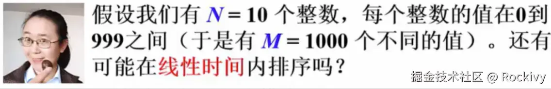 当M非常小的时候(例如4w个学生只有101个不同成绩值,那这个时候其实就相当于一种线性的算法)