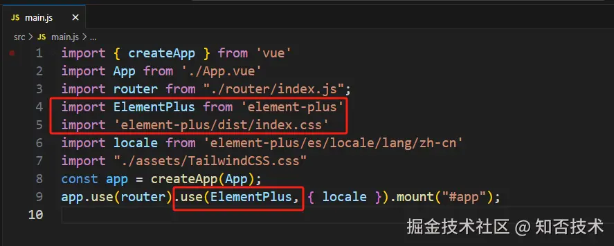 在 main.js 里面配置 Element plus