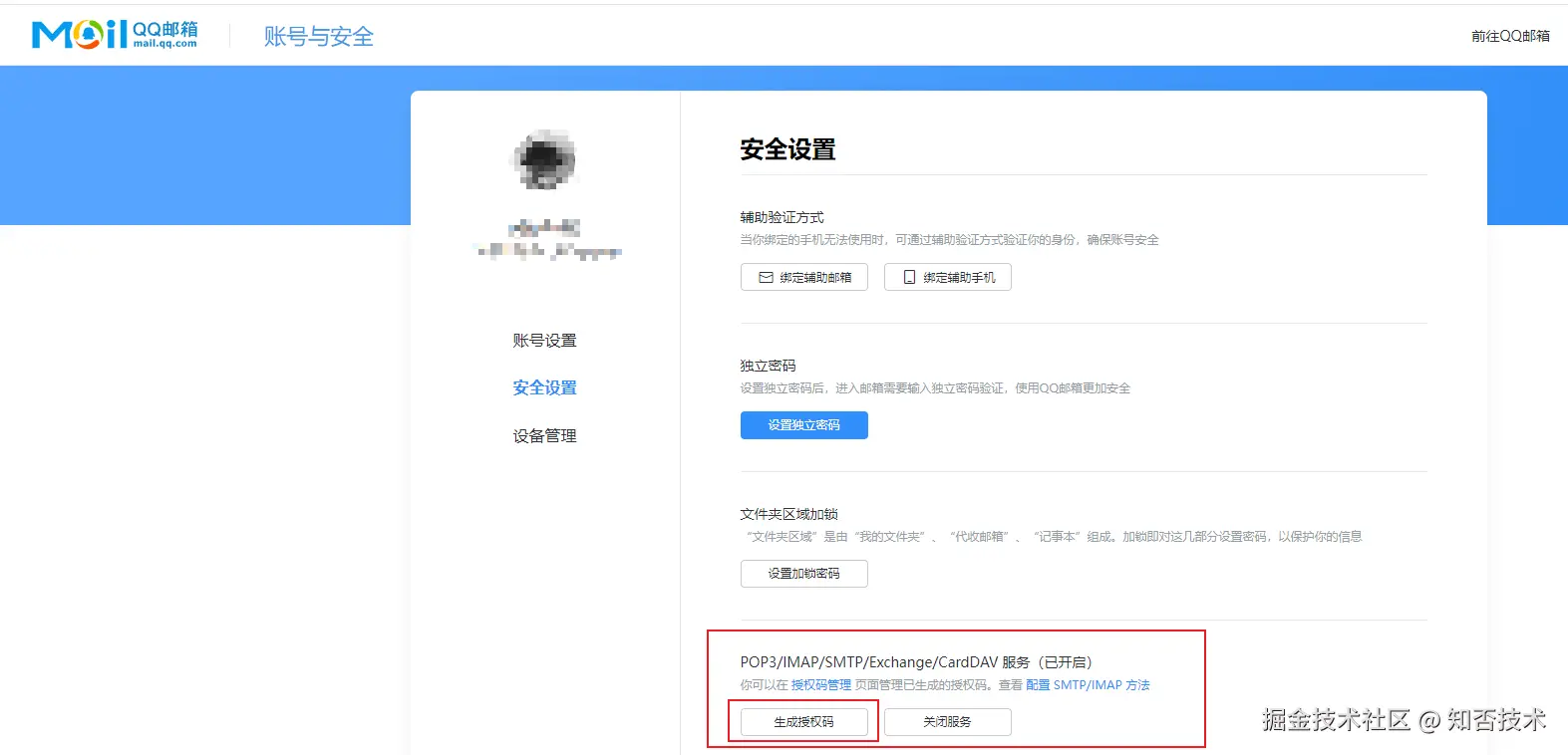 2.开启邮箱服务,保存生成的邮箱授权码
