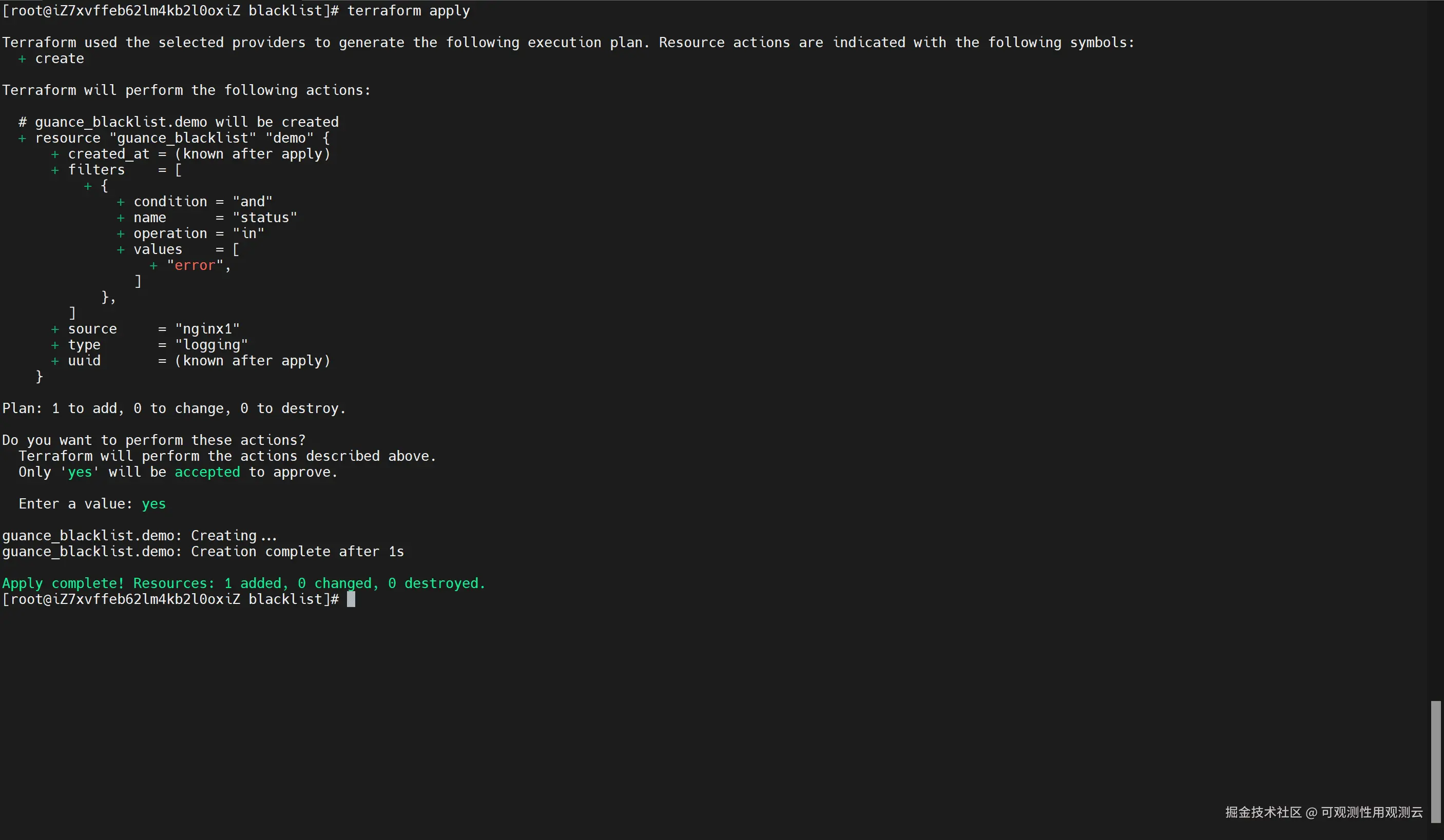 terraform apply # 创建资源