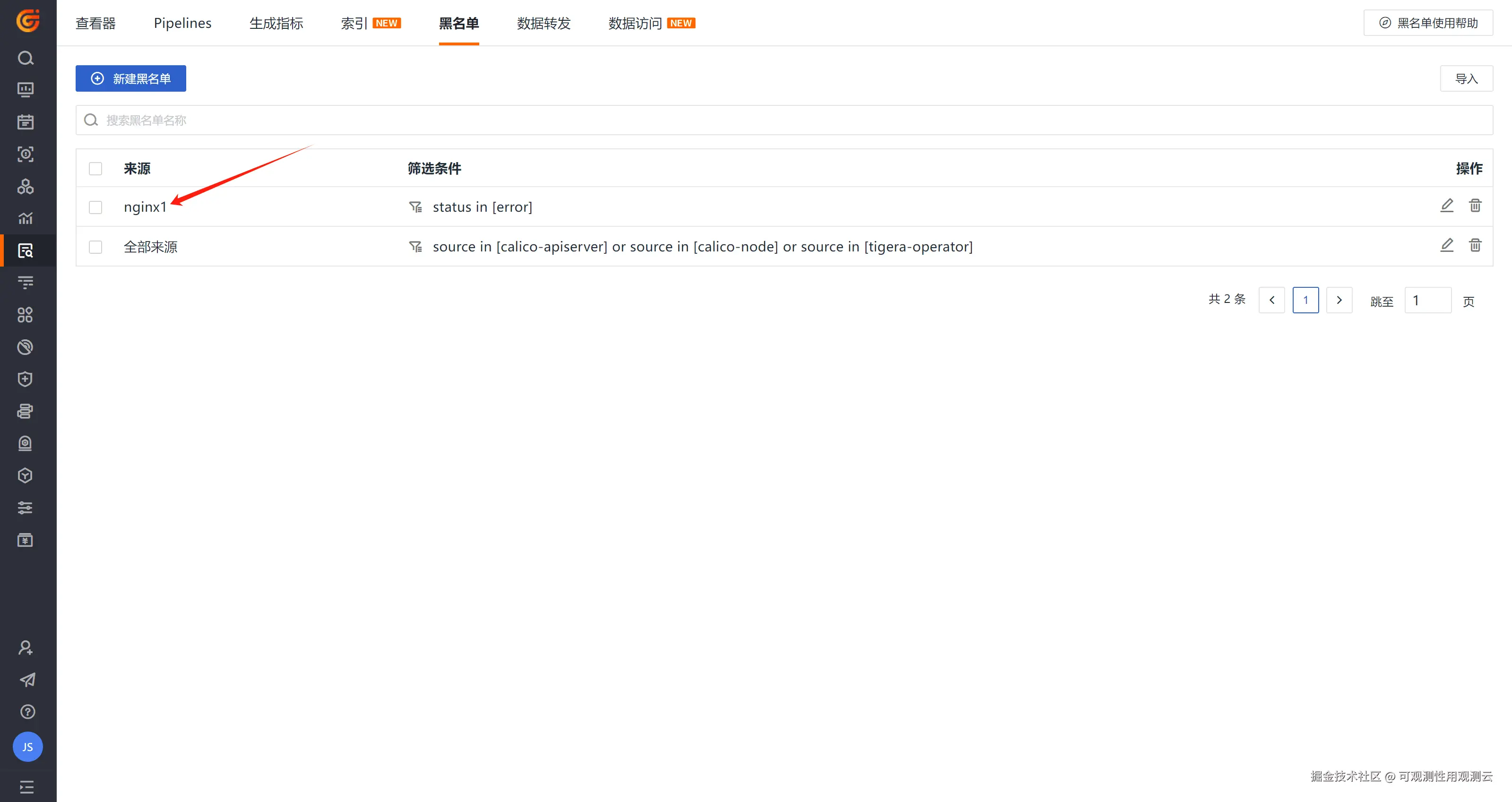 - 创建 BlackList:观测云支持通过设置黑名单的方式过滤掉符合条件的不同类型的数据,即配置黑名单以后,符合条件的数据不再上报到观测云工作空间,帮助您节约数据存储费用;