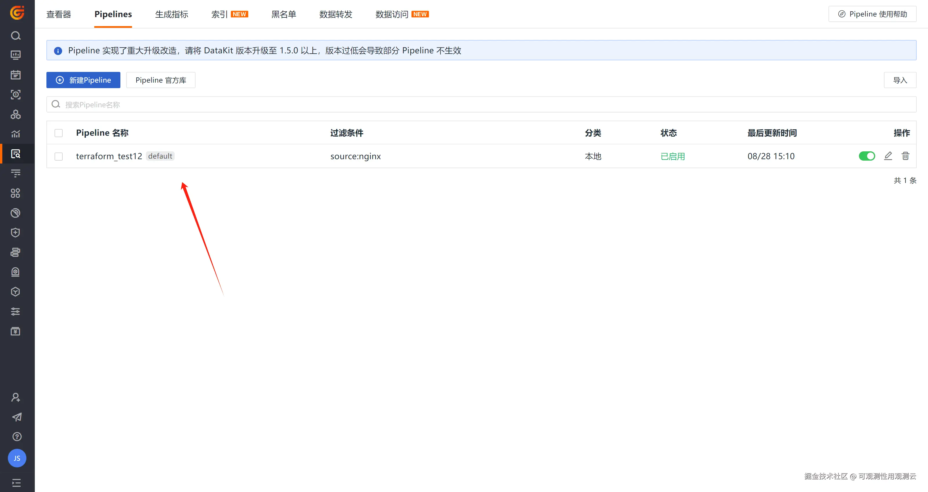 - 创建 Pipeline:Pipelines 是一种运行在 DataKit 上的轻量级脚本语言,用于对采集到的数据进行自定义解析和修改。通过定义解析规则,它们能够将不同种类的数据细粒度地切割并转换为结构化的格式,以满足具体的数据管理需求;