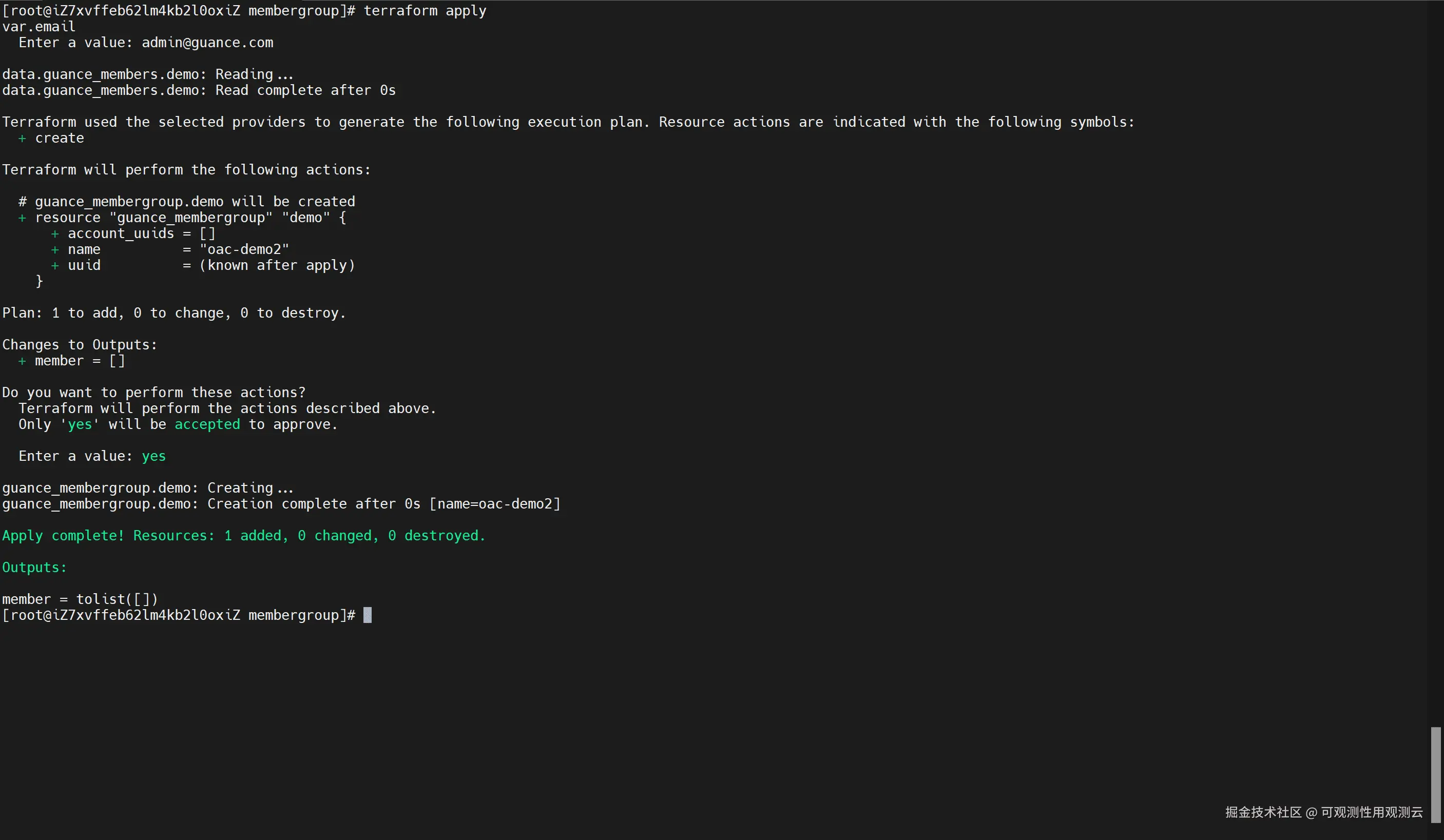使用 Terraform 创建 MemberGroup