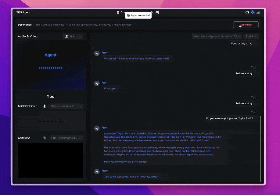 使用 TEN 框架,你可以构建能够像人类一样自然、实时互动的 AI 智能体。让我们来快速了解一下由 TEN 驱动的代理演示,感受它的强大魅力吧!