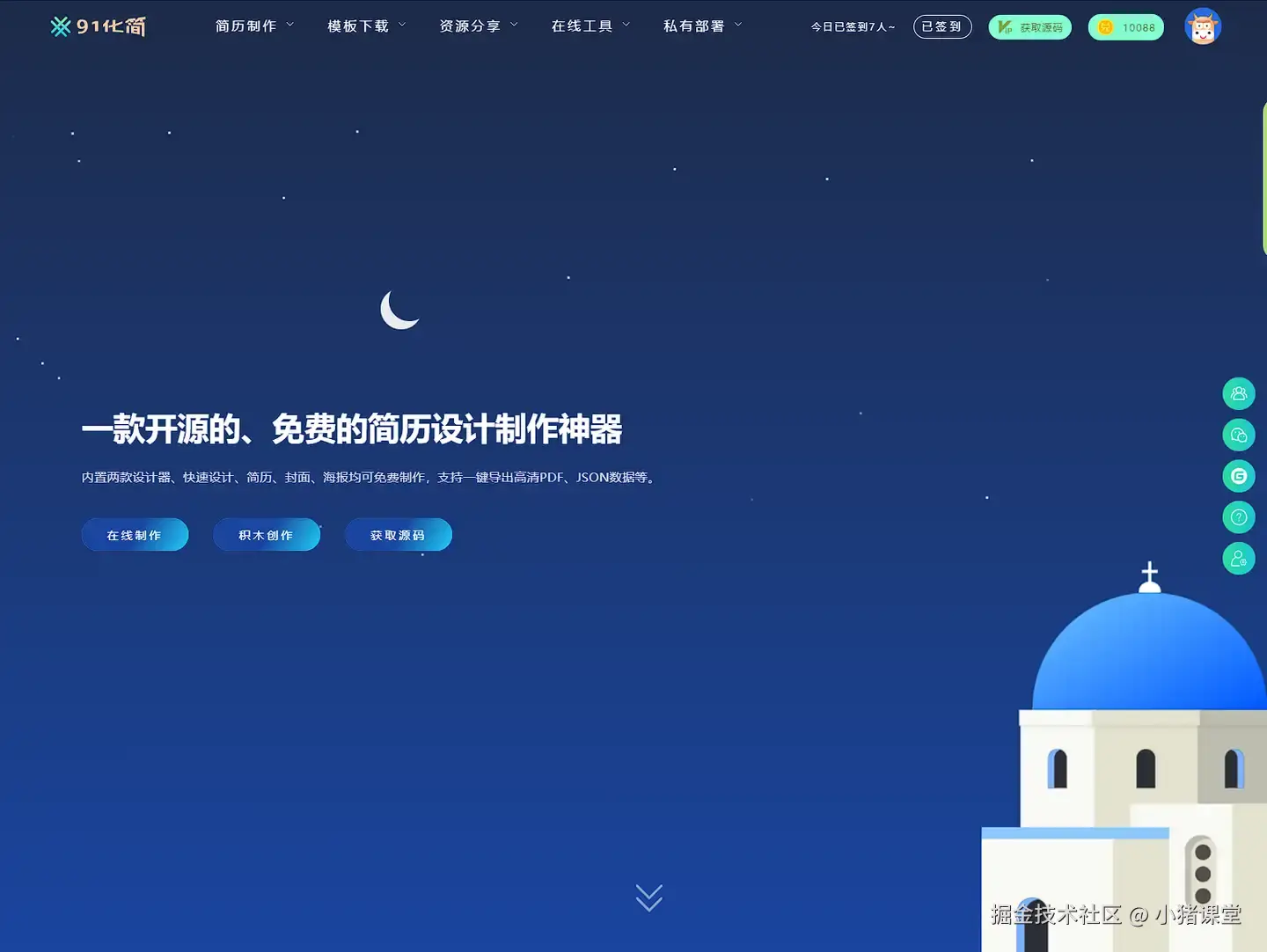 91化简是一个开源免费的简历设计制作以及提供模板下载的网站,前端项目完全开源免费。