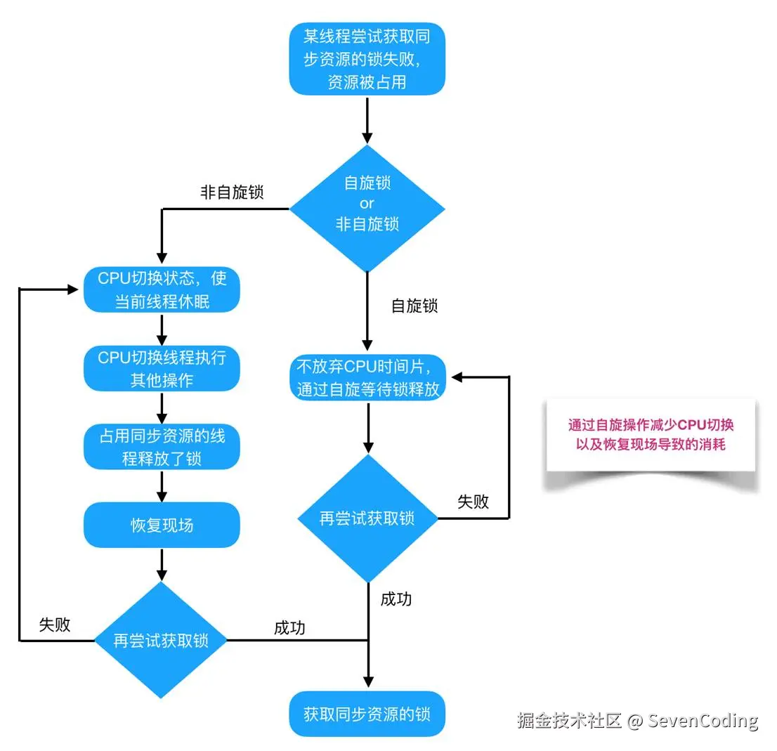 总的来说就是,线程的切换需要进行上下文切换,上下文的切换开销可能比执行任务代码的开销还要大,那么这种情况就可以先"自旋",避免切换线程的开销