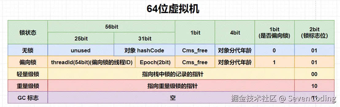 四种锁状态对应的的Mark Word内容: