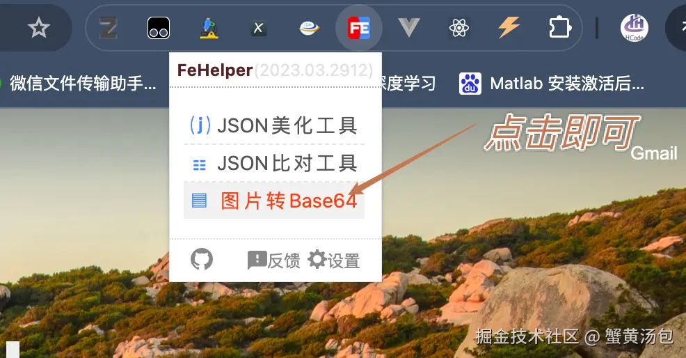 然后我们需要将验证码图片转换为Base64编码的验证码图像,转换Base64编码推荐使用谷歌浏览器插件FeHelper进行转换,具体使用方法可参考下图: