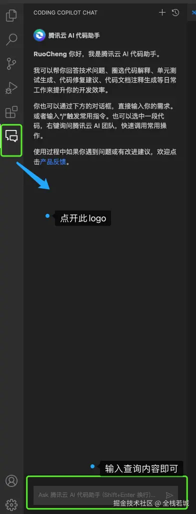 从上图中我们可以了解到如和在ide 中安装腾讯AI助手,以及基础的问答使用, 接下来我们将会开启一个新的篇章--工作中如何使用腾讯云AI代码助手
