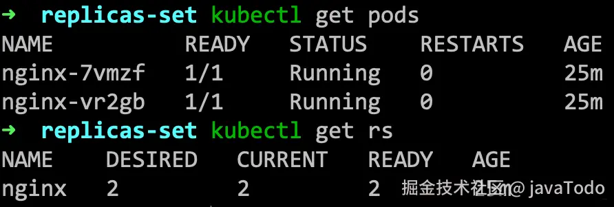 kubectl scale rs nginx --replicas=2 更新某 pod 内集群数: