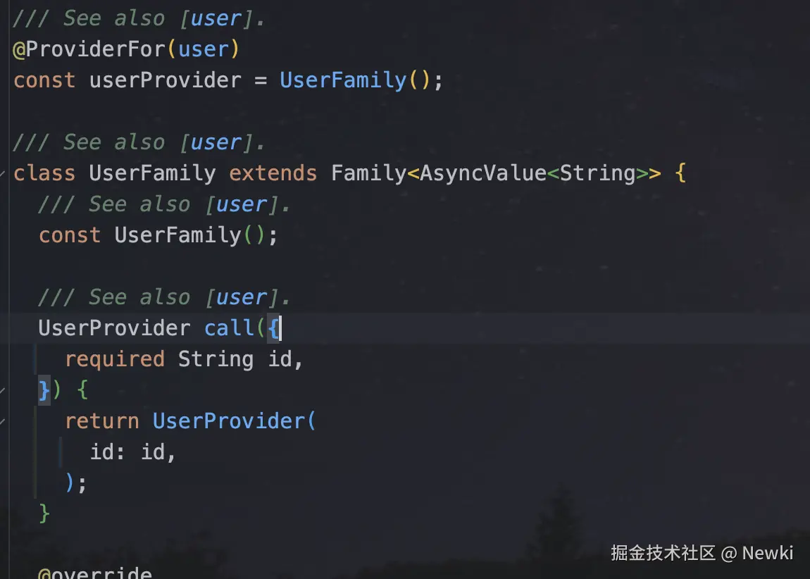 其实也可以看到他们是类似的,只是 UserRepository 不带参数是默认的 Provider,而 SettingRepository 带参数,所以他是 Provider - family 类型的,它是多实例的。