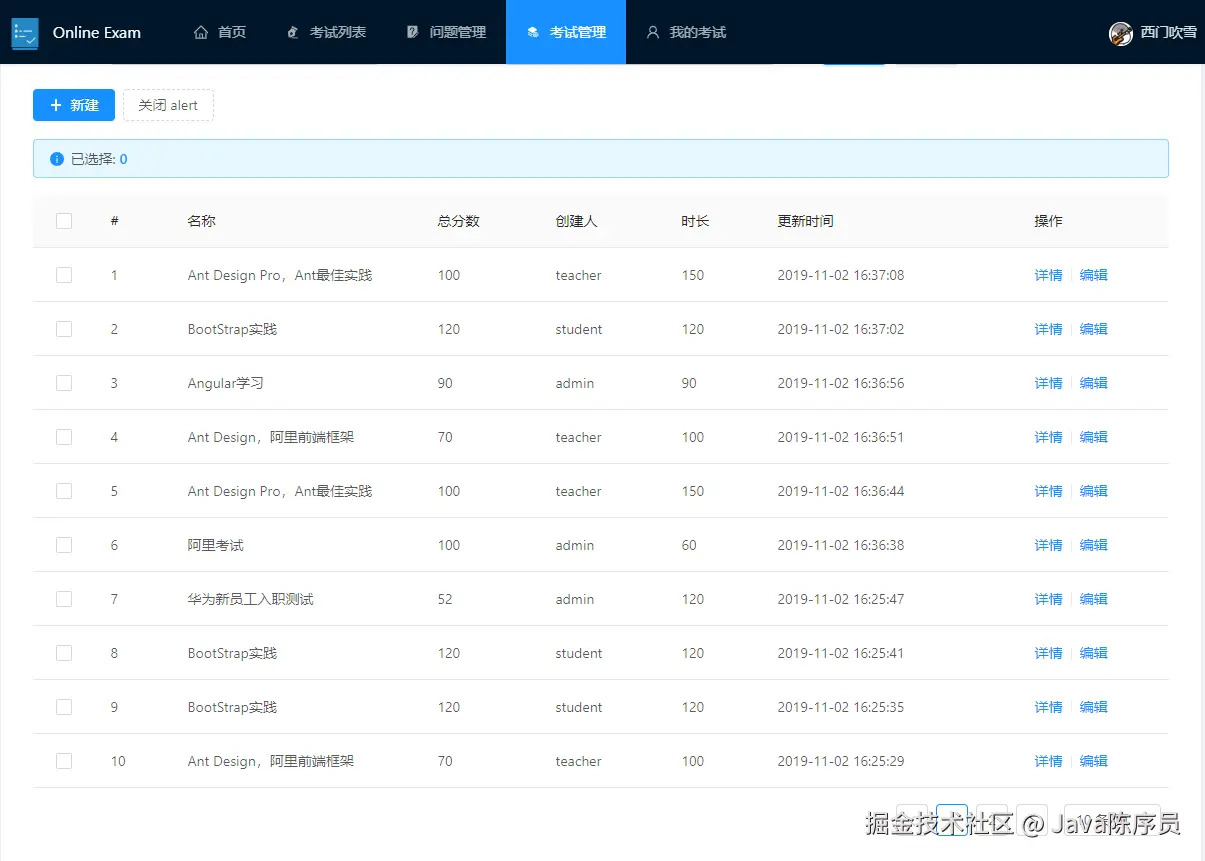 spring-boot-online-exam —— 一个基于 Spring Boot + Vue 实现的在线考试系统,支持学生、教师、管理员三种角色。
