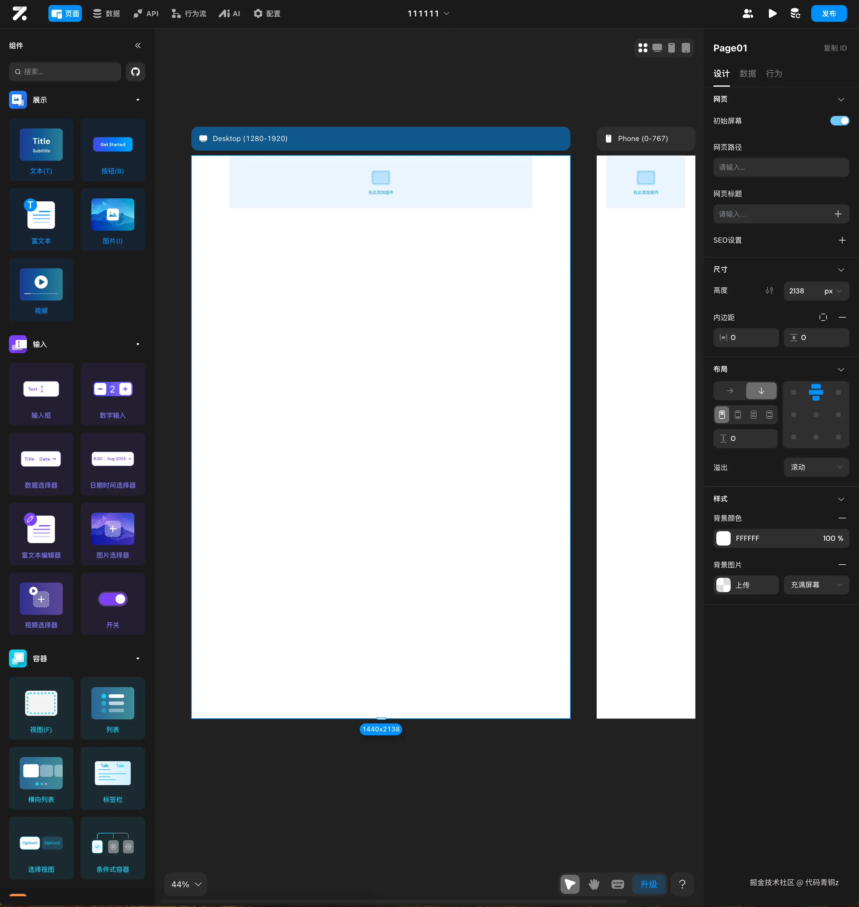 定位: 低代码开发,选择抽象业务级别组件这一层,来做整体的产品设计。由此主要产出物被限定为各种企业内部系统,例如员工管理、面试管理、供应商管理等。