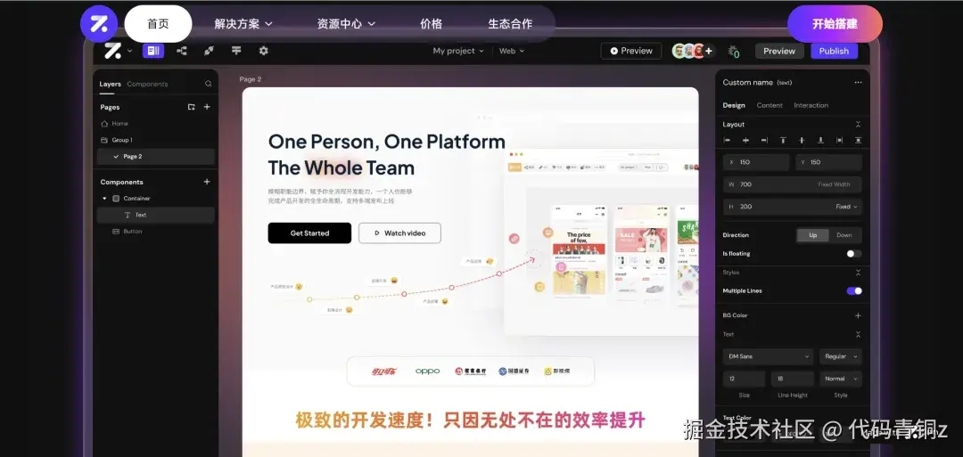 Zion无代码平台基于项目制付费,适合独立开发者和小型创业公司。