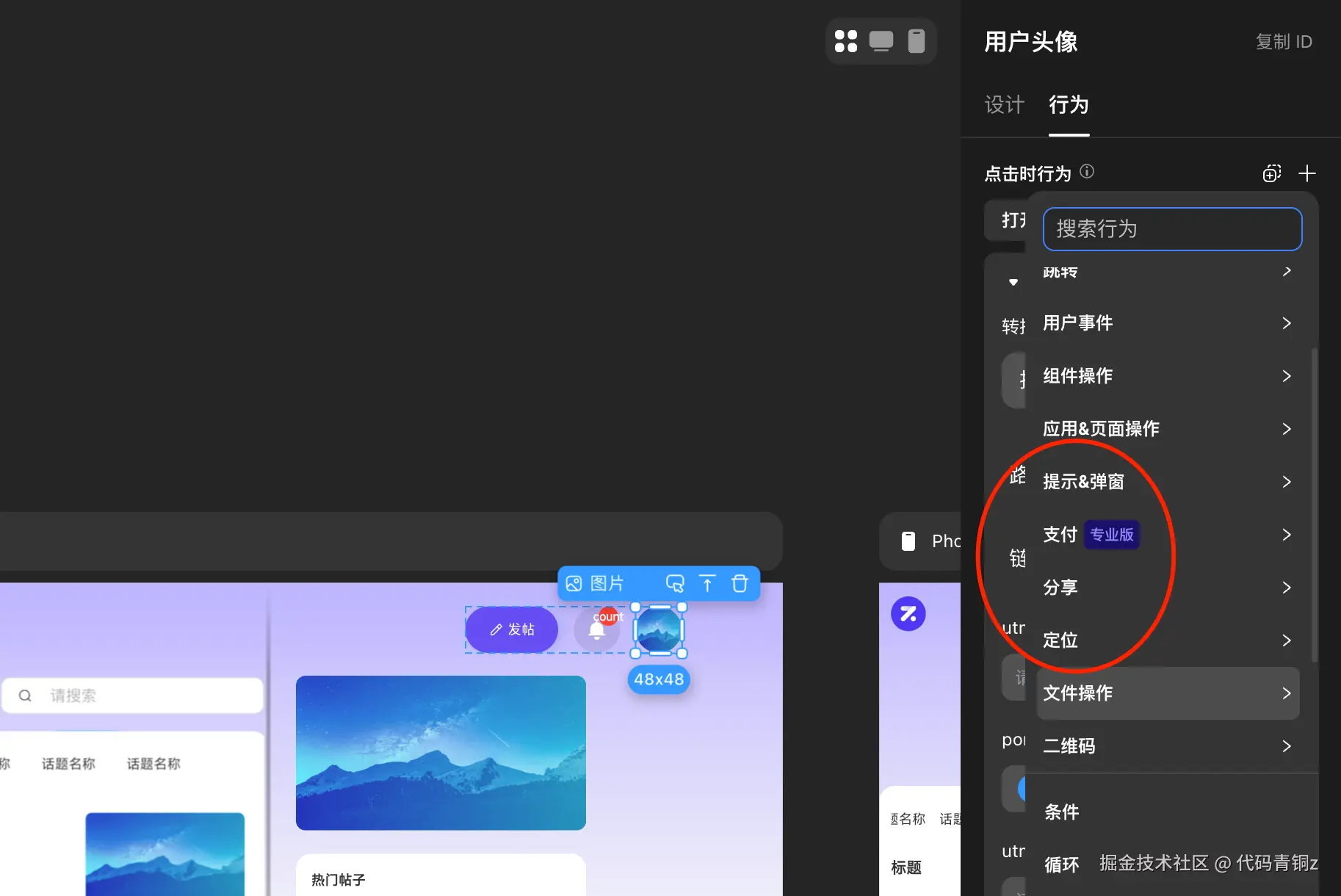 △ 飞书低代码行为配置(左) Zion无代码行为配置(右)
