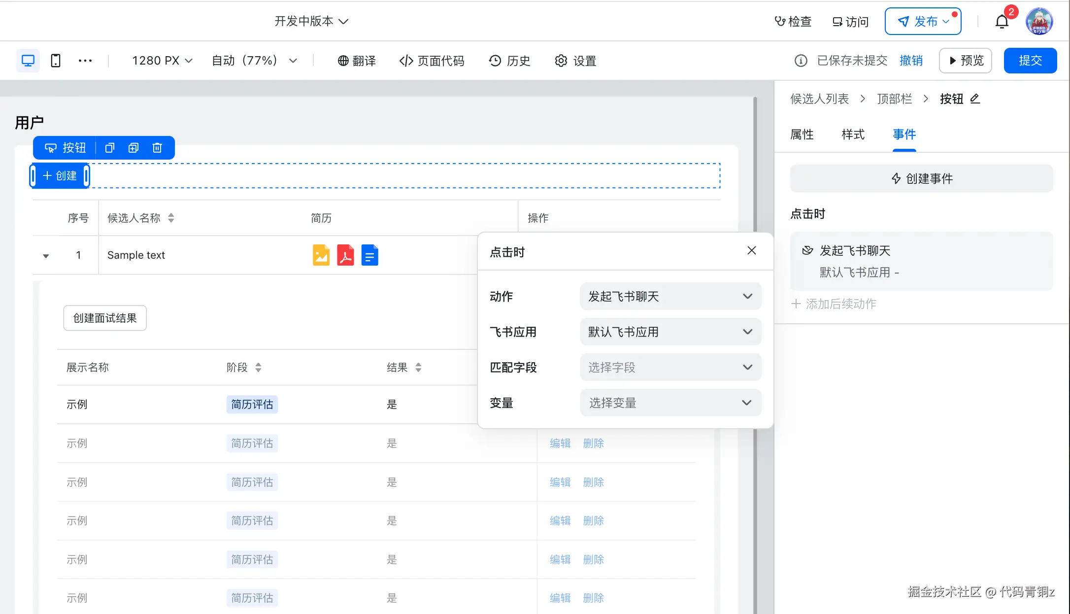 飞书低代码主要与飞书生态内产品高度集成,复用了飞书众多能力,例如公式编辑、自动化、飞书群聊能力等等。