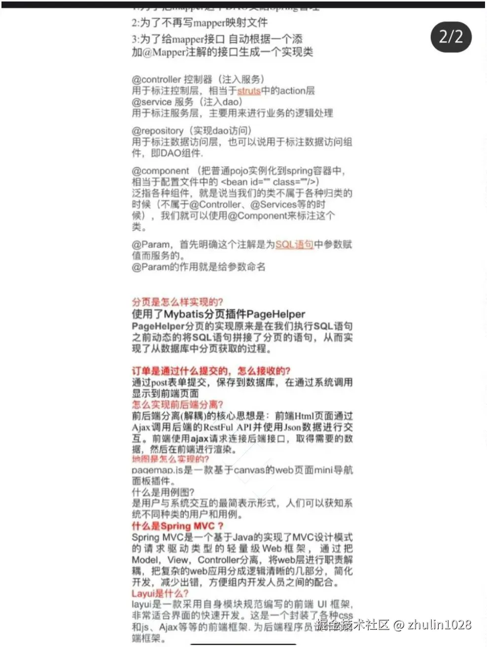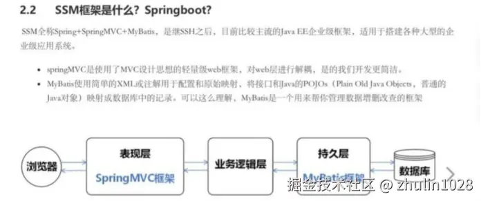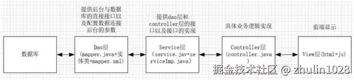 mybatis:持久层的一个框架,方便对数据库操作,封装 JDBC,原始 jdbc 操作繁琐核心逻辑代码在 controlle层;Controller 层通过调用 serviceimpl里面接口调用 mybatis 层的 mapper 里的 SQL 语句,SQL 语句执行完毕后反馈数据到controller,controller 再返回给前端 view 层显示;