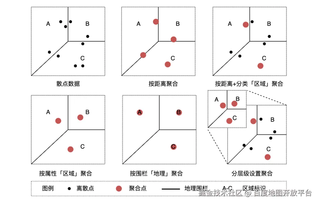 这些多样化的聚合策略使用户能够高效地管理和展示地理数据点,以满足复杂的空间分析与展示需求。