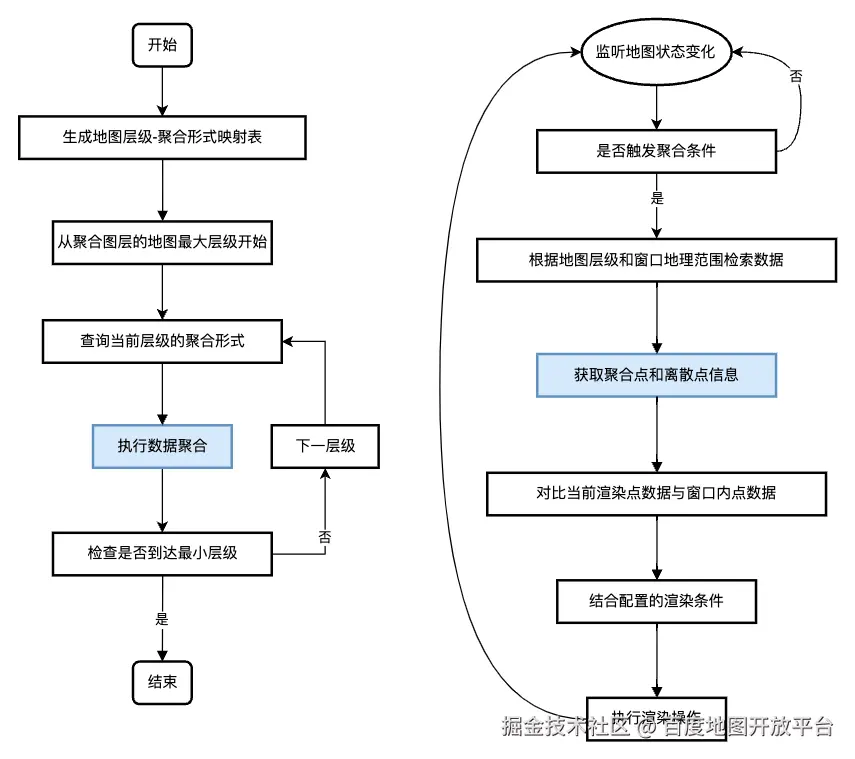 随后,从聚合图层的地图最大层级到最小层级,依次查询相应的「聚合形式」并执行数据聚合。