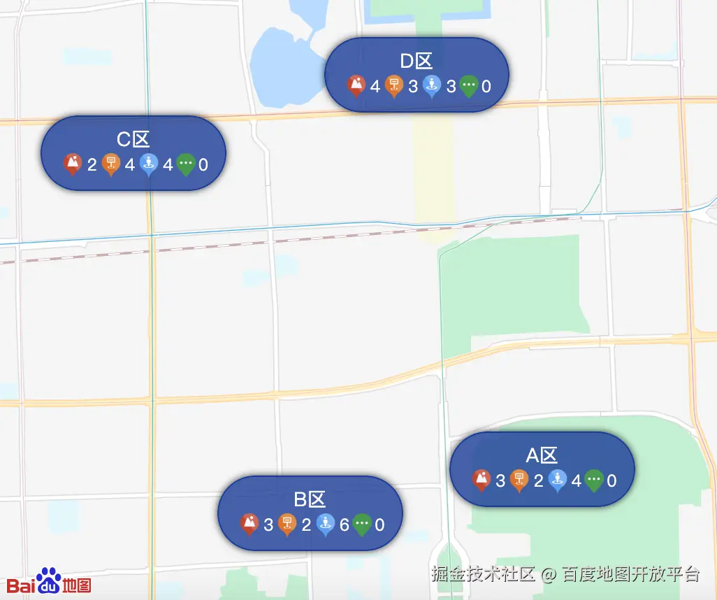 离散点: 可以使用不同颜色、形状的图标或者 UI 布局来表示不同类型的地图点;