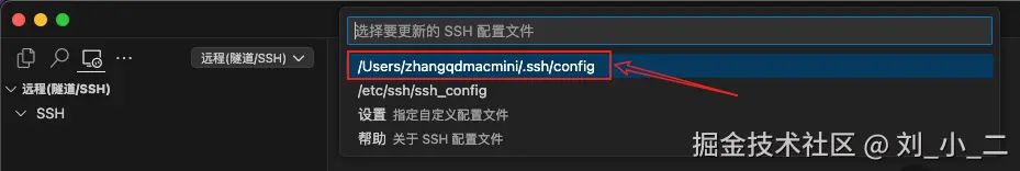 2.3 回车后会弹出选择更新配置文件,点击第一个路径,会在本地电脑对应目录(/User/xxx/.ssh)下自动生成一个config文件: