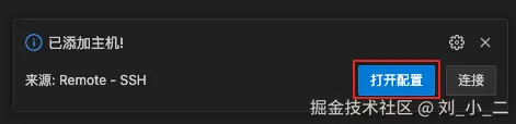 2.5 在 config 文件配置完成并保存后,在VSCode的远程资源管理器中已经出现刚配置的远程服务器,此时点击红框按钮连接即可