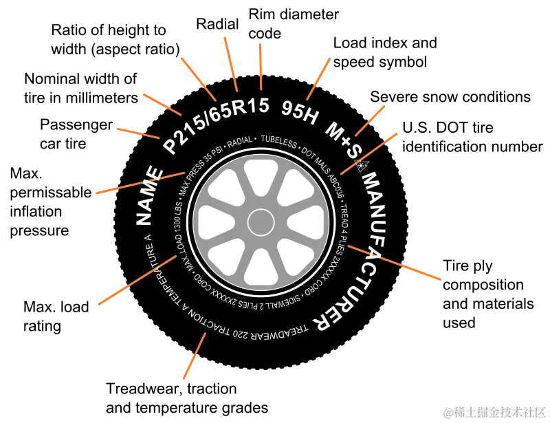 说到这里就要提到这种竞争能完全良性展开的基础了。是否用错轮子显然永远事关载具的安全,极严苛的标准是开放与竞争的前提。举一个刚刚提到的行业里最相关的例子。轮胎的事实标准有世界通行的 DOT 码,美国交通部和欧洲(European Tyre and Rim Technical Organisation (ETRTO) Tire and Rim Association (TRA) )都认可同一套标记体系,当然也包括中国在内。除此之外还有统一的评测标准 Uniform Tire Quality Grading(UTQG),包含摩擦系数到耐磨程度一大堆非常详细的公式。