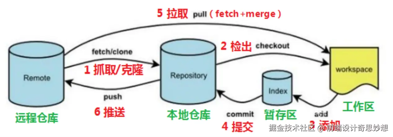- push(推送): 修改完成后,需要和团队成员共享代码时,将代码推送到远程仓库