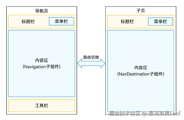 Navigation和NavDestination都是容器组件,必须配合使用,一般用在程序入口页面使用Navigation包裹,子页面使用NavDestination包裹,然后使用NavPathStack配合navDestination属性进行页面路由。
