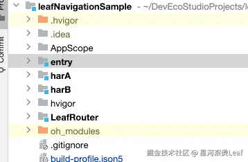 也可以直接在entry模块的oh-package.json5文件中dependencies添加"leafrouter": "file:../LeafRouter"。然后再终端执行ohpm install。