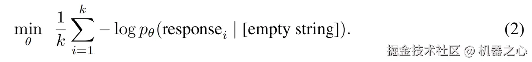 方法,给定包含指令和对应响应的一组示例 D_ins = {instructioni , response_i}^k_i=1,响应调优将指令字符串替换为空字符串,并优化如下: