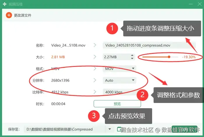 使用数据 蛙视频转换器进行视频压缩的优点有: