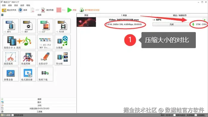 视频压缩软件免费版推荐4:数据 蛙视频转换器