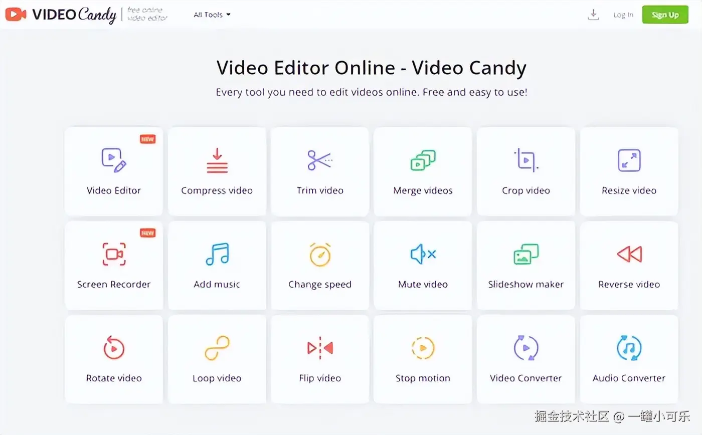 步骤1:在浏览器中进入Video Candy网站,选择并进入vido editor功能。