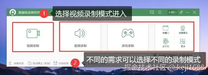 直播录屏方法二:数据 蛙录屏软件