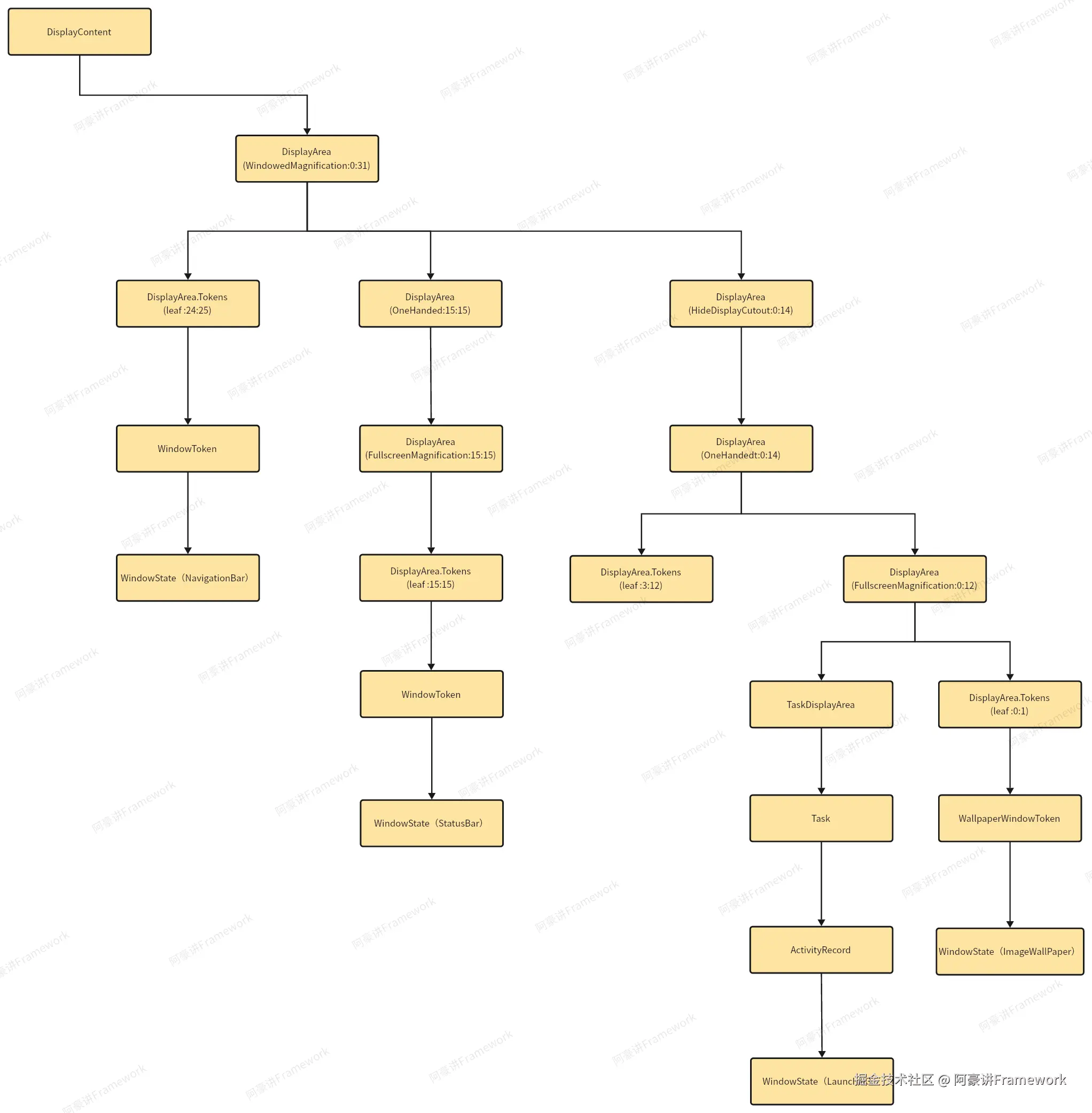 实际只有 WindowState 节点才是最终显示的窗口,其他节点都是窗口容器。