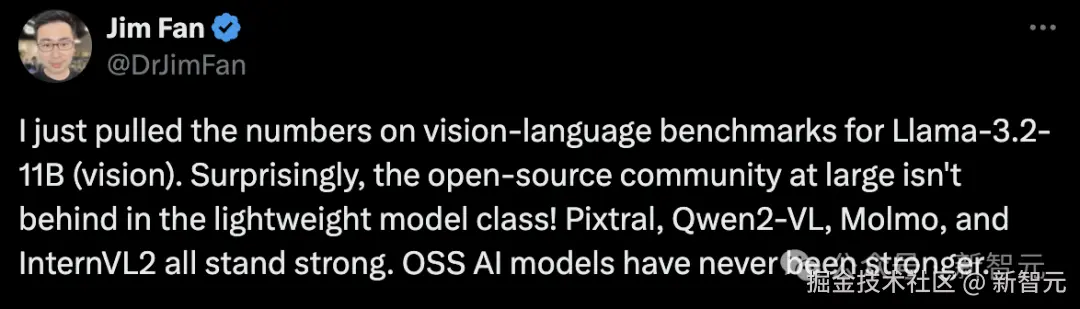 就连英伟达高级科学家 Jim Fan 都不禁夸赞,在轻量级模型中,开源社区整体上并不落后!