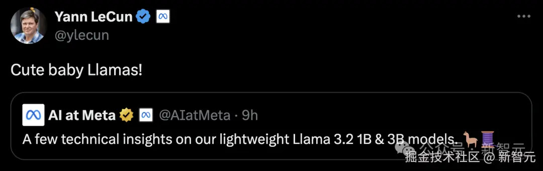 也就是说,模型的纯文本能力便不会受到任何影响,而开发者也可以将之前部署的 Llama 3.1 无缝替换成 Llama 3.2。