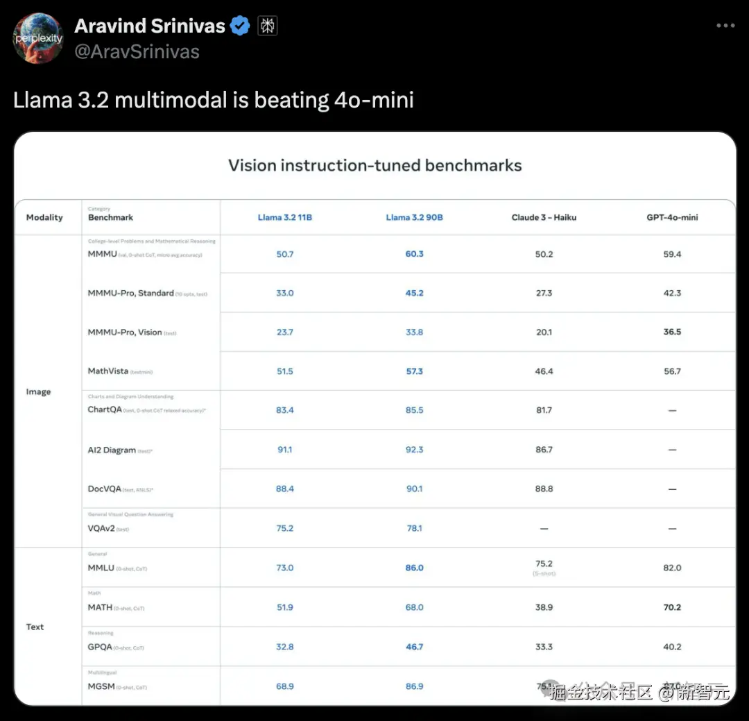 甚至,90B 版本击败了 GPT-4o mini。
