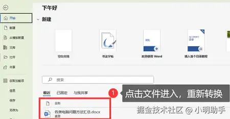 第2步: 在“最近”的板块里选择被误删的pdf文件的docx格式,点击进入该文件重新进行转换即可。