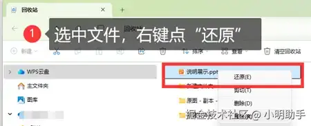 第2步: 在里面找到误删的pdf文件后,选中文件按下鼠标右键,点击“还原”。