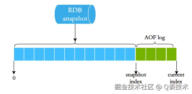 创建出一个同时包含 RDB 数据和 AOF 数据的 AOF 文件, 其中 RDB 数据位于 AOF 文件的开头, 它们储存了服务器开始执行重写操作时的数据库状态,