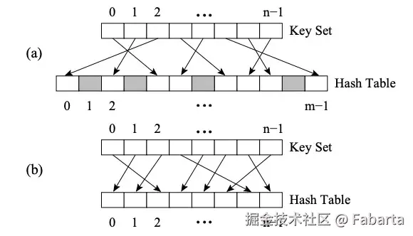 Perfect HashMap 于其他 HashMap 的区别在于其采用了 Perfect Hash Function(PHF)。函数 H 将 N 个 key 值映射到 M 个整数上,这里 M>=N,且满足 H(key1)≠ H(key2)∀key1,key2,则该函数是完美哈希函数。如果 M=N,则 H 是最小完美哈希函数(Minimal Perfect Hash Function,简称 MPHF)。此时 N 个 key 值会被映射到 N 个连续的整数上。