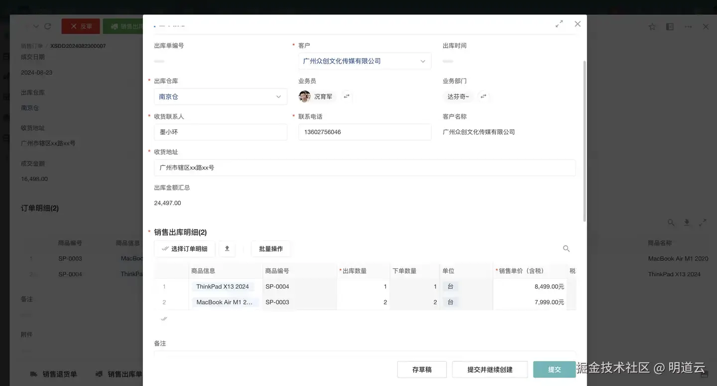 销售下单